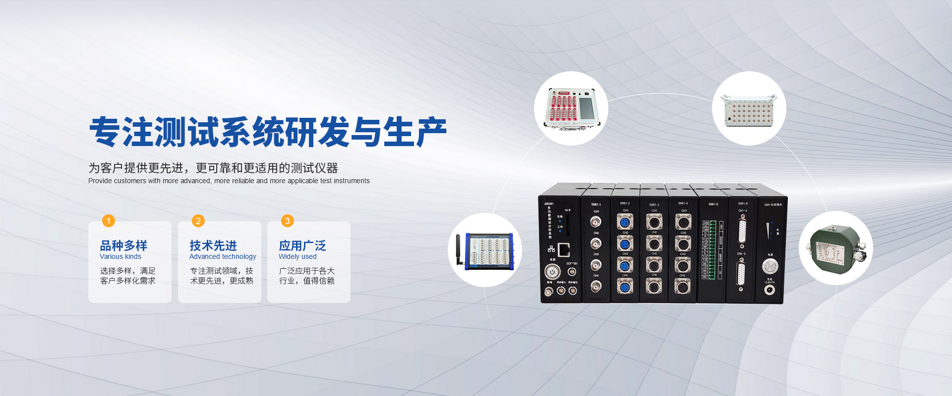 Our wireless telemetry series, strain gauges, amplifiers, data acquisition and analysis systems and other products have been widely used and well received by customers